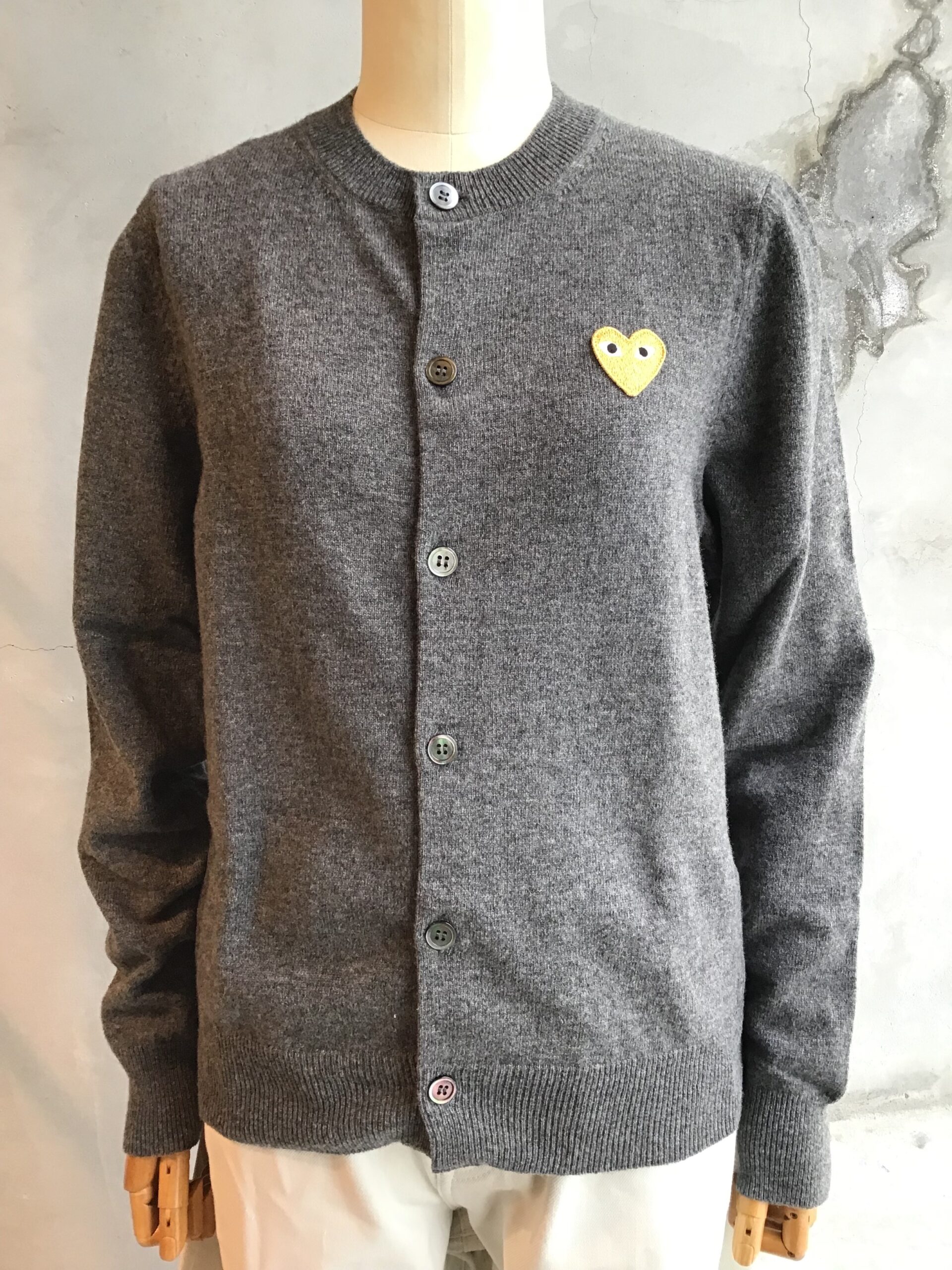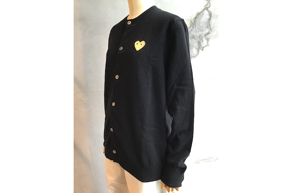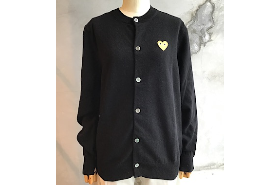 【PLAY COMME des GARCONS】PLAY GOLD HEART ROUND-NECK CARDIGAN【N049】