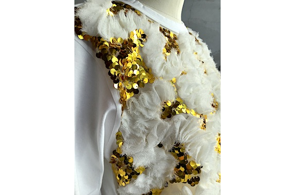 商品: エステルチュール×綿天竺 刺繍加工Tシャツ 価格: ¥38,500-(¥35,000+税) カラー: 白×ゴールド / サイズ : S