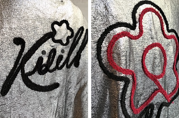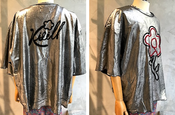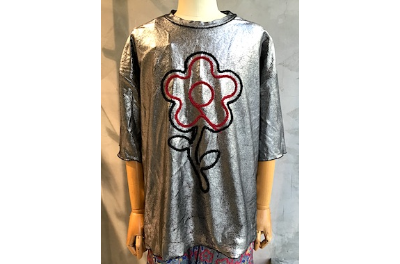 商品: FLOWER CORD EMBROIDERY VELOUR TEE BIOSTONE WASHED 価格: ¥33,000-(¥30,000+税) カラー: BLACK × SILVER FOIL / サイズ : FREE